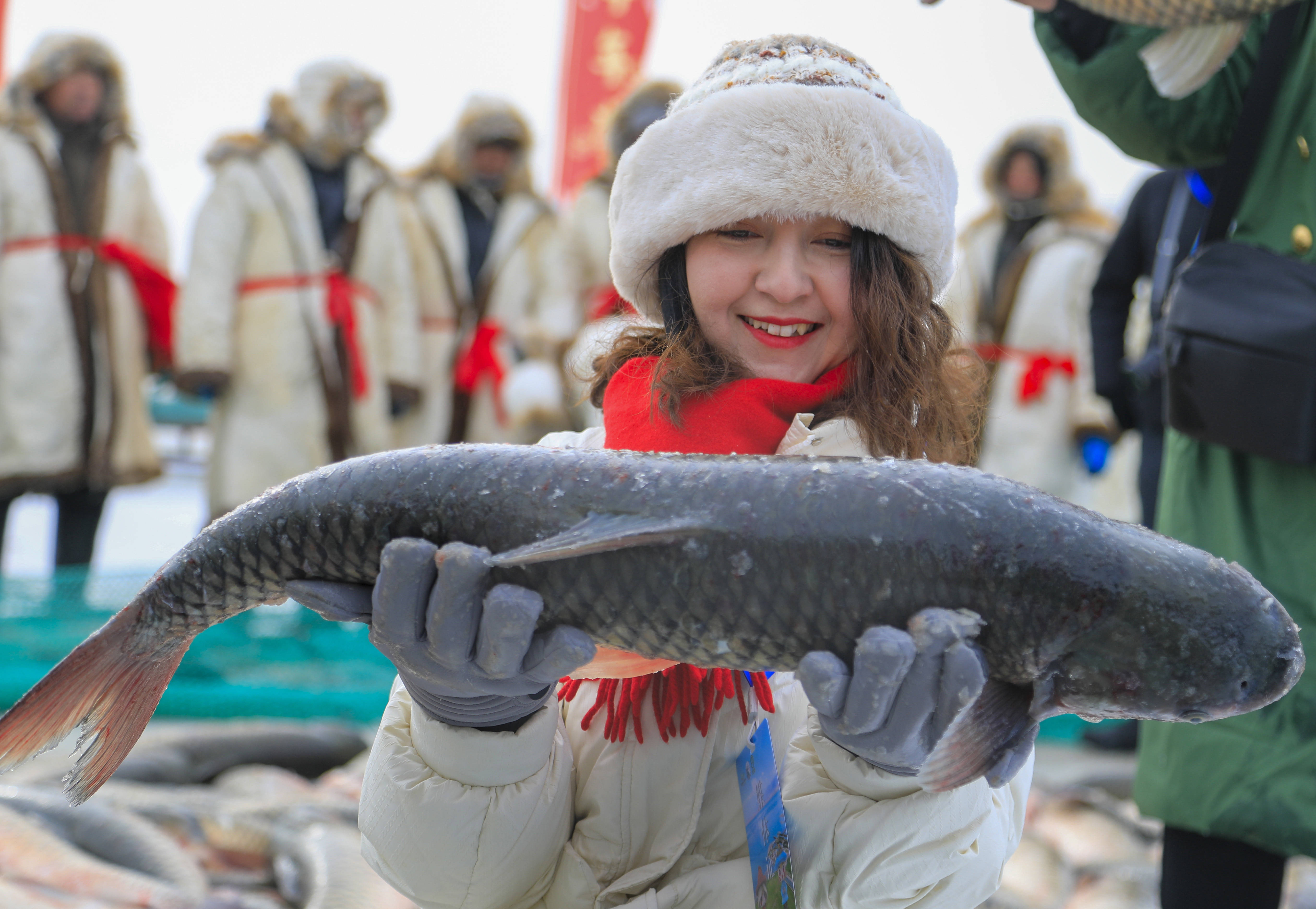 1月18日,在博斯腾湖冰面上,游客手捧刚打捞上来的博斯腾湖鱼。新华社发(年磊摄)打破单一化印象