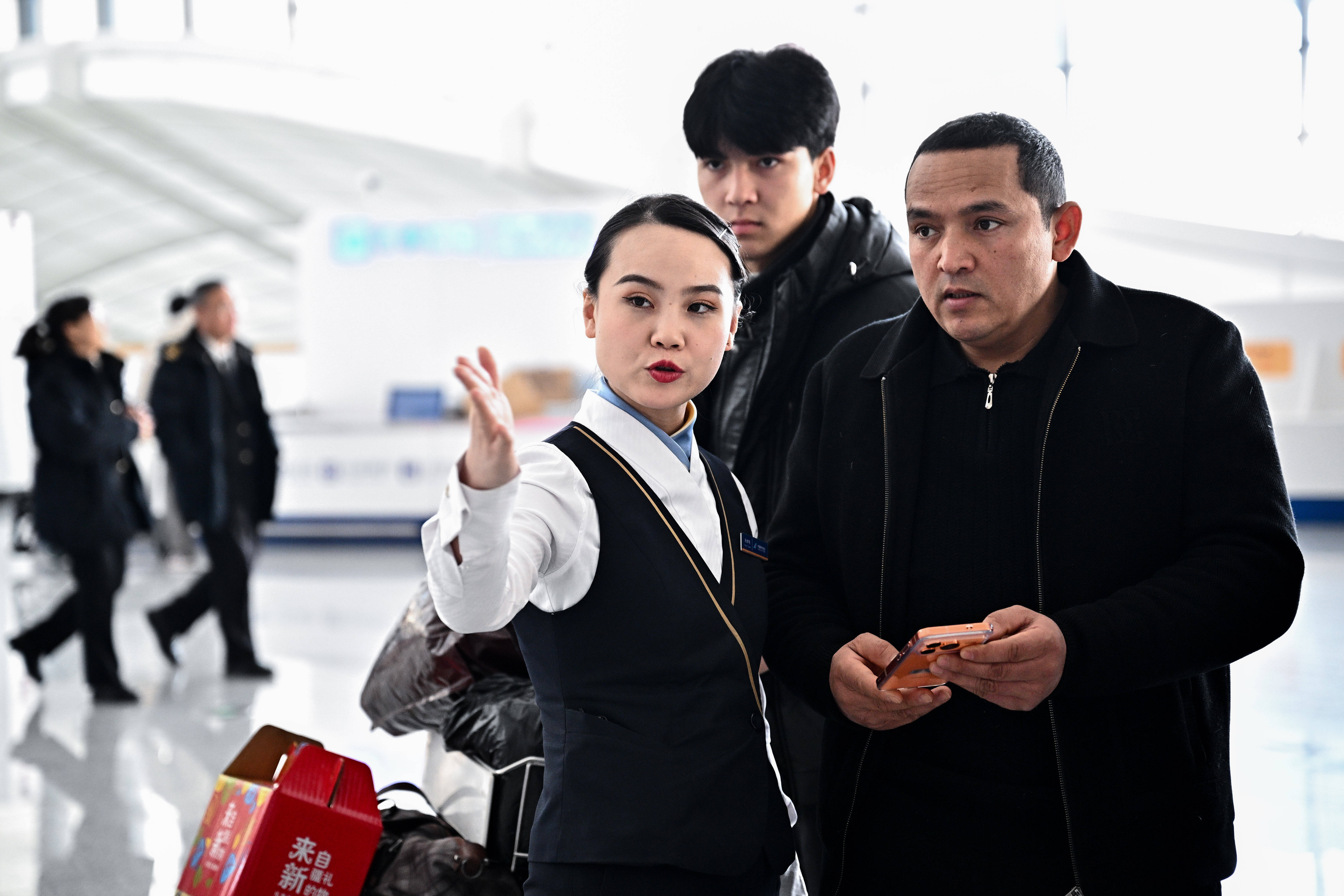 乌鲁木齐天山国际机场,导乘人员为旅客引导方向。新华社记者 辛悦卫 摄发放4.5万张冰雪旅游消费券