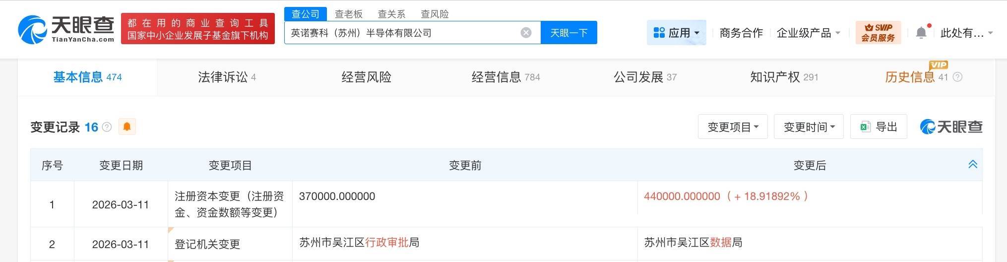 南方财经3月17日电,天眼查工商信息显示,近日股票配资门户导航,英诺赛科(苏州)半导体有限公司发生工商变更,注册资本由37亿人民币增至44亿人民币,增幅约19%。该公司成立于2017年10月,法定代表人为WEIWEILUO,经营范围包括半导体器件的研发、设计、生产、销售等。股东信息显示,该公司由英诺赛科(苏州)科技股份有限公司全资持股。
